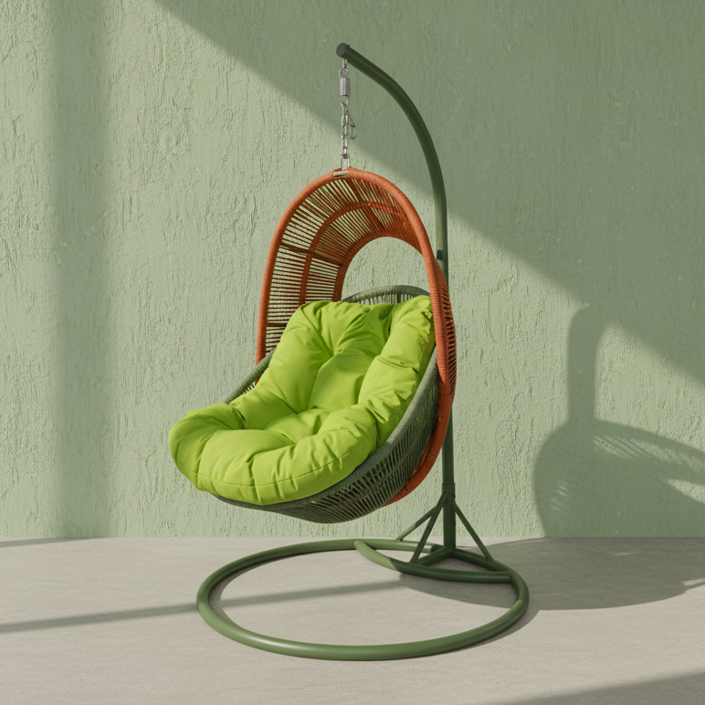 The bold use of contrasting colors (such as the vibrant and eye-catching orange version and the natural and refreshing green version) transforms this hanging chair from a decorative supporting role in the outdoor space into a visual focal point. Whether it’s an afternoon nap on the terrace or stargazing reading in the courtyard, the gentle swaying rhythm and the sense of security it provides create an outdoor aesthetic dream about relaxation, freedom, and dialogue with nature.